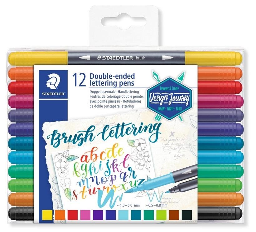 Pisaki Brush Lettering to zestaw dla każdego fana tworzenia pięknego pisma odręcznego. Dzięki dwóm końcówkom nie ma konieczności kupowania osobno markerów pędzelkowych i cienkich - wystarczy tylko jedno opakowanie. Dwustronne flamastry pędzelkowe. Dzięki dwóm końcówkom pozwalają skupić się na szczegółach i precyzyjnie tworzyć wysublimowane dzieła pisma odręcznego - hand letteringu. Precyzyjna końcówka 0,5 - 0,8 mm nadaje się do szczegółów. Elastyczna końcówka pędzelkowa kreśli linie 1-6 mm w zależności od kąta nachylenia i nacisku. Zestaw 12 kolorów.