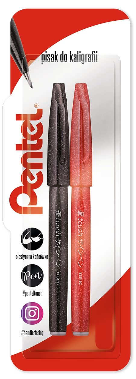 Opakowanie Pisak/pędzelek do kaligrafii SES15, czarny i czerwony blister