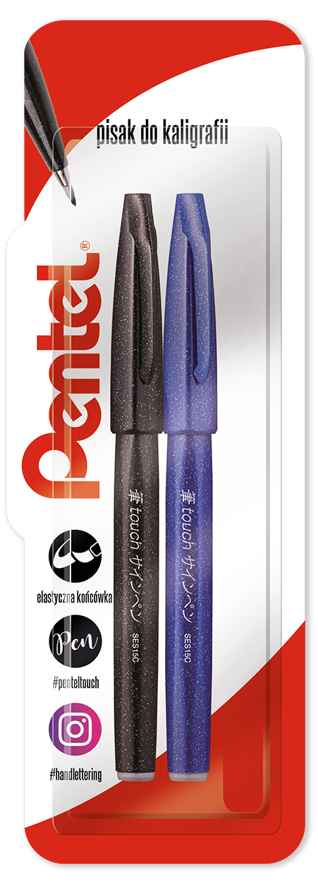Opakowanie Pisak/pędzelek do kaligrafii SES15, czarny i niebieski blister