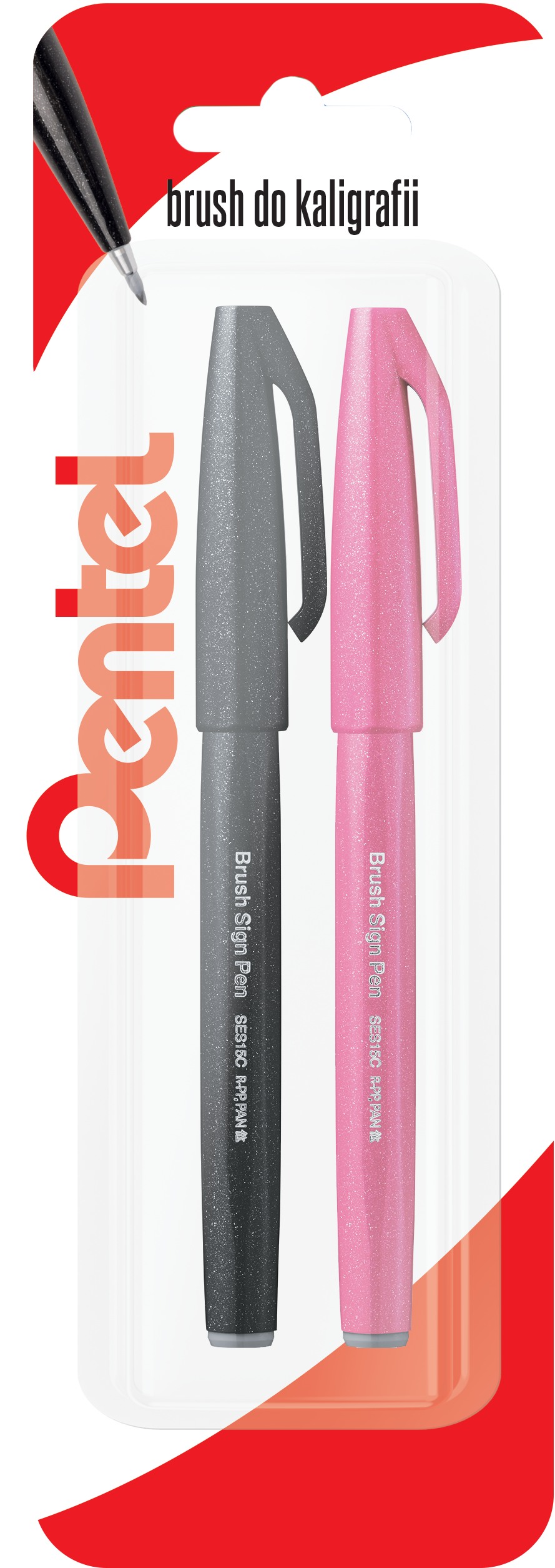 Opakowanie Pisak/pędzelek do kaligrafii SES15, czarny i różowy blister
