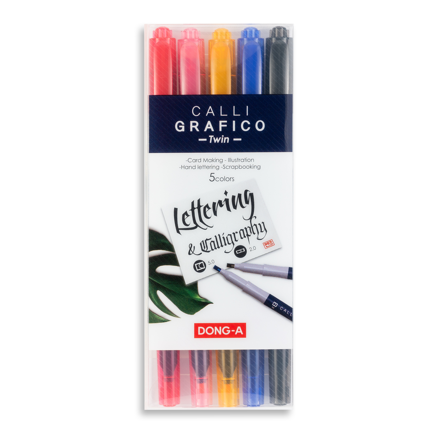 Opakowanie Pisaki do kaligrafi dwustronne ścięte 5 kolorów