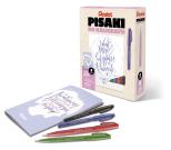 Zestaw składa się z kolorów: brązowy, pomarańczowy, żółty, szary oraz zeszytu do lekcji letteringu.