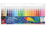 Aż 24 pisaki w rozmiarze jumbo z owalną końcówką w intensywnych kolorach. . Bardzo dobrze kryją większe powierzchnie, są niełamliwe, mają bardzo wytrzymałą końcówkę. Dodatkowo zastosowano innowacyjny tusz, który po nałożeniu dwóch warstw kolorów na siebie nie dziurawi papieru. Bardzo okazały zestaw, doskonały na prezent.