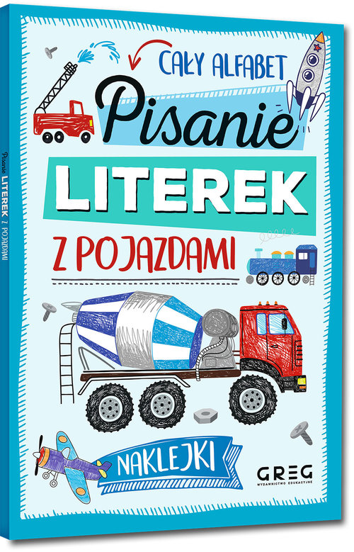 Każdej literce towarzyszą ilustracje do pokolorowania, które uprzyjemniają pracę. Są one przygotowane specjalnie z myślą o małych użytkownikach książki - duże, wyraźne, proste do pokolorowania. Kolorowe naklejki do każdej ilustracji mogą posłużyć jako wzór, jak pomalować obrazek. Każdy mały miłośnik pojazdów znajdzie tu coś dla siebie - są tu maszyny drogowe, samoloty, statki, rakiety, luksusowe samochody, motory, pojazdy wojskowe i wiele innych. Przy każdej ilustracji znajduje się też nazwa pojazdu. Dodatkowo można podpisać swoją pracę!