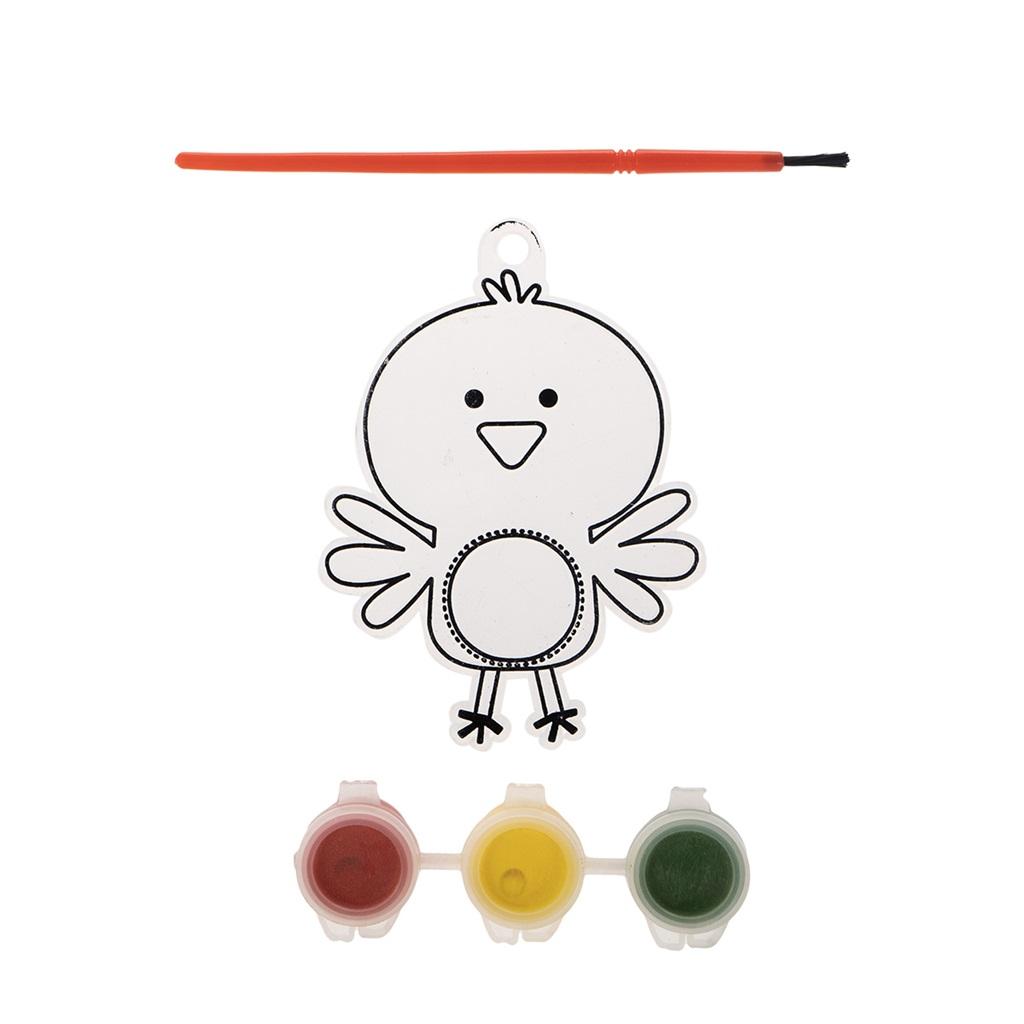 Witrażyk do samodzielnej dekoracji. Zestaw z farbkami oraz pędzelkiem. Angażująca zabawa dla dzieci. Kolorowe witrażyki po pomalowaniu można powiesić jako dekorację na sznureczku. Idealne do zabawy w domu, szkole czy przedszkolu. Wymiary witrażyka: około 7x9 cm.