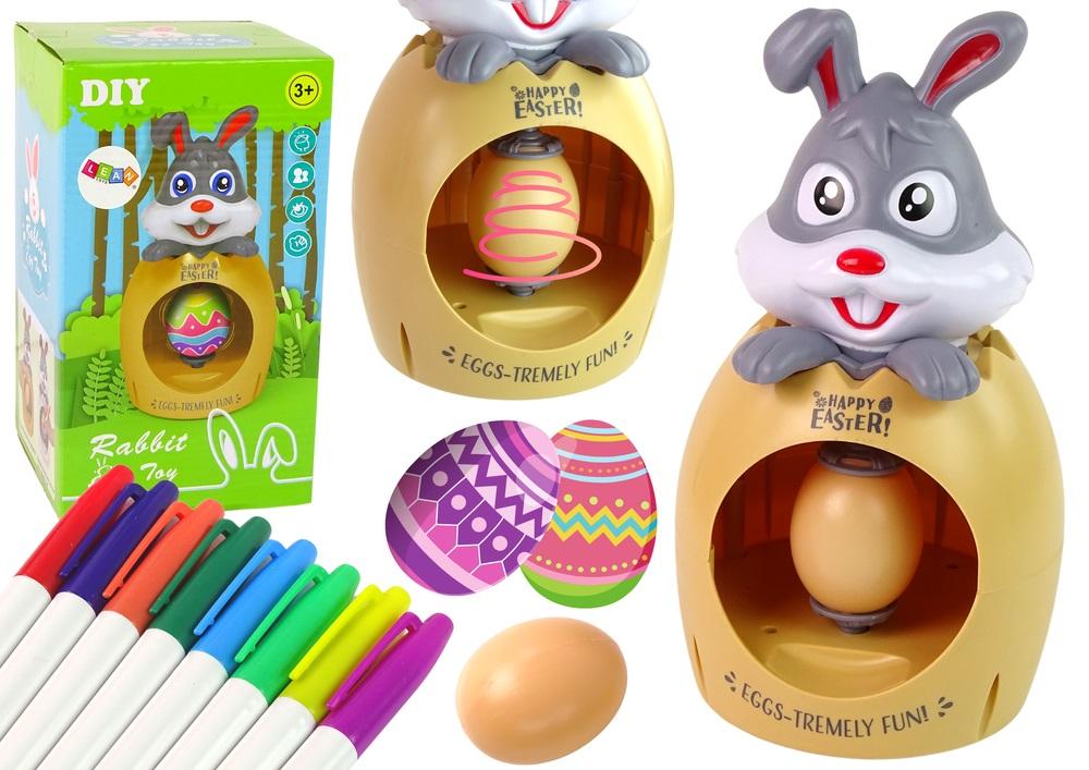 Wielkanocne Pisanki Jajka Do Malowania Królik Zając Mały króliczek jako przyrząd do malowania jajek sprawi frajdę małym fanom Wielkanocy. Piękne ozdobione jajeczka wielkanocne będą idealną dekoracją na święta Wielkanocne, a w trakcie tworzenia piękny wzorów rozwinie w Twoim dziecku kreatywność i zmysł artystyczny. W zestawie znajdują się 3 sztuki jajeczek i zestaw 8 pisaków, czekają na stworzenie pięknych jajeczek. Króliczek będzie pięknie wyglądał jako ozdoba pokoju i pomoże w malowaniu świątecznych pisanek, doda świątecznego akcentu w Twoim domu. Jajka wykonane są z tworzywa sztucznego, bezpieczne i nietoksyczne, lekkie i mogą być używane przez długi czas. Elementy zestawu: - 8 pisaków - 3 jajka - króliczek podstawka Wymiary: - królik: 13 cm x 12 cm x 24 cm - jajko: 4 cm x 4 cm x 6 cm Wymiary opakowania: 13 cm x 13 cm x 24 cm Zabawka odpowiednia dla dzieci powyżej 3 roku życia. Posiada certyfikat CE.