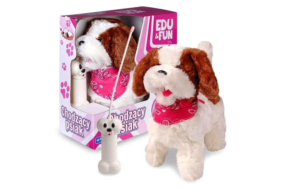FUNKCJE: PO NACIŚNIĘCIU PRAWEGO KLAWISZA PIESEK IDZIE DO PRZODU, LEWEGO - IDZIE DO TYŁU I SZCZEKA, WYM. PIESKA: 23X20 CM.,