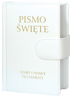 Okładka książki Pismo Święte ST i NT małe białe z zapięciem