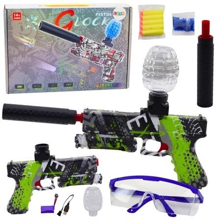 PISTOLET NA KULKI ŻELOWE WODNE OKULARY Pistolet na kulki żelowe i strzałki piankowe to idealna propozycja dla miłośników dynamicznej zabawy i rywalizacji. Model wzorowany na kultowym Glocku zapewnia realistyczne doznania i precyzyjne strzały dzięki pełnej automatyce - wystarczy nacisnąć spust, aby broń oddawała strzały w szybkim tempie. Pistolet zasilany jest akumulatorem, co gwarantuje długotrwałą i nieprzerwaną rozgrywkę. Dzięki lekkiej, a zarazem solidnej konstrukcji z tworzywa ABS, pistolet jest odporny na uszkodzenia i wygodny w użytkowaniu. Unikalny design graffiti nadaje mu wyjątkowego charakteru, a dodatkowe akcesoria, takie jak tłumik, magazynek oraz okulary ochronne, podnoszą komfort i bezpieczeństwo zabawy. Zasięg strzału wynoszący od 20 do 30 metrów pozwala na dalekie i precyzyjne uderzenia w cel. To doskonały wybór dla każdego, kto szuka dynamicznej, wciągającej zabawy z wykorzystaniem zarówno kulek żelowych, jak i strzałek piankowych z przyssawkami. SPECYFIKACJA: Rodzaj pistoletu: automatyczny Rodzaj amunicji: kulki żelowe 7-8 mm / strzałki piankowe Zasięg: 20-30 m Materiał: trwałe tworzywo ABS Kolor: unikalne graffiti Zasilanie: akumulator z kablem do ładowania Wymiary pistoletu: 38 x 20 cm Wymiary opakowania: 28,5 x 19,5 x 7,5cm ZAWARTOŚĆ ZESTAWU: Pistolet - imitacja Glocka Magazynek - atrapa celownika Tłumik Akumulator z kablem do ładowania 500 sztuk kulek żelowych do samodzielnego przygotowania 5 strzałek piankowych z przyssawką Okulary ochronne Oryginalne opakowanie