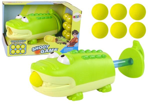 Pistolet posiada miękkie kulki, które są bezpieczne dla dzieci. Utrzymany w kolorach zieleni, dzięki czemu wygląda estetycznie. Wyglądem przypomina prawdziwego krokodyla z wielkimi oczami i łuskami. Miękką, piankową kulkę należy załadować do buzi krokodyla. Na tyle znajduje się wajcha, która odpowiada za wyrzut pocisków, pod wpływem sprężonego powietrza wyrzuca kulkę na wprost, na duże odległości.
