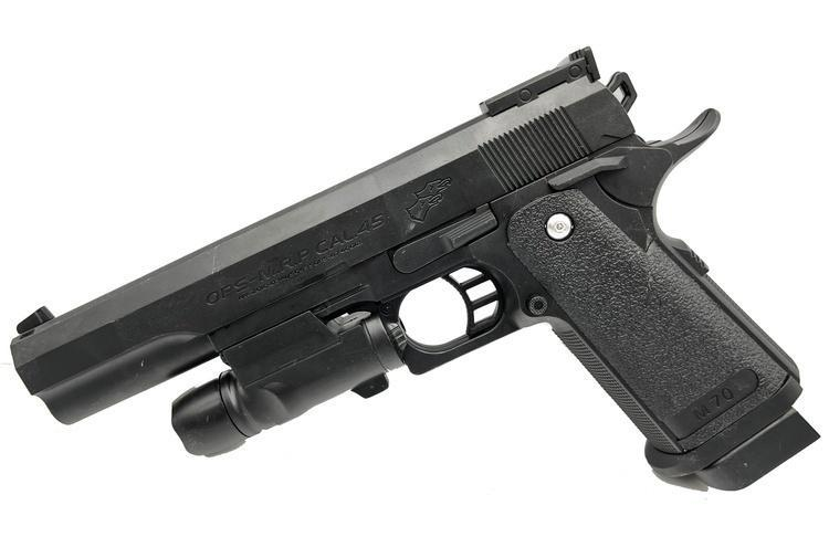 Realistyczna imitacja pistoletu L3936, wykonana z wytrzymałego plastiku, wyposażona w funkcjonalny laser celowniczy oraz wyjmowany magazynek. Model ten strzela standardowymi kulkami plastikowymi 6 mm (BB), co czyni go świetnym wyborem do rekreacyjnej zabawy, treningu celności lub jako element przebrania militarnego.