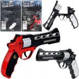 Rewolwer "FULL-ALLOY REVOLVER 208" - Zabawkowa Broń z Regulowaną Rękojeścią (Czerwono-Czarny / Czarno-Biały) na kapiszony. Wciel się w rolę bohatera akcji z naszym rewolwerem "FULL-ALLOY REVOLVER 208"! Ta realistyczna zabawka, dostępna w dwóch wyrazistych wariantach kolorystycznych, to idealna propozycja dla dzieci, które uwielbiają odgrywać role, tworzyć ekscytujące scenariusze i symulować policyjne pościgi czy przygody kowbojów. Dynamiczny Design i Wymienne Rękojeści: Rewolwer charakteryzuje się nowoczesnym, sportowym wyglądem z otworami wentylacyjnymi w lufie, co nadaje mu futurystyczny charakter. Wykonany z solidnego tworzywa sztucznego, które imituje metal ("FULL-ALLOY"), zapewnia trwałość i odporność na intensywną zabawę. Co wyróżnia ten model, to możliwość łatwej zmiany koloru rękojeści - w zestawie znajduje się zarówno czerwona, jak i biała (lub czarna i biała) rękojeść, co pozwala na personalizację zabawki. Na korpusie widnieje napis "REVOLVERS TOYS 208" oraz "Guangdong China". Bezpieczna Zabawa w Odgrywanie Ról: Ten zabawkowy rewolwer jest bezpieczny w użytkowaniu i przeznaczony do zabawy w odgrywanie ról. Nie strzela pociskami, co eliminuje ryzyko związane z niebezpiecznymi przedmiotami. Dzieci mogą bez obaw wcielać się w postacie z ulubionych filmów, kreskówek czy gier, rozwijając swoją kreatywność i umiejętności społeczne poprzez interakcję z innymi. Rozwój Wyobraźni i Ról: Zabawa rewolwerem to doskonały sposób na: Rozwijanie wyobraźni i kreatywności: Dzieci mogą tworzyć własne historie, scenariusze i dialogi. Wspieranie umiejętności społecznych: Idealna do zabawy z rówieśnikami w "policjantów i złodziei" czy "agentów specjalnych". Rozwijanie zdolności narracyjnych: Układanie fabuły i odgrywanie różnych postaci. Idealny Prezent: Rewolwer "FULL-ALLOY REVOLVER 208" to świetny prezent dla każdego dziecka, które uwielbia zabawę w odgrywanie ról, przygody i akcję. Doskonały na urodziny, święta czy inną okazję. Specyfikacje (dla pojedynczego rewolweru): Wymiary opakowania: 19x12x3 cm Materiał: Wysokiej jakości tworzywo sztuczne z imitacją metalicznego wykończenia. Kolory: Główny korpus czarny, z możliwością zmiany rękojeści na czerwoną lub białą (w zależności od wariantu zestawu). Cechy: Wymienna rękojeść (zestaw może zawierać obie opcje rękojeści, co pozwala na modyfikację). Zawartość Zestawu: 1x Zabawkowy rewolwer (z dołączoną opcją zmiany rękojeści lub losową rękojeścią w zależności od opakowania). Zalecany Wiek: Od 3 lat (jak sugeruje oznaczenie na opakowaniu).