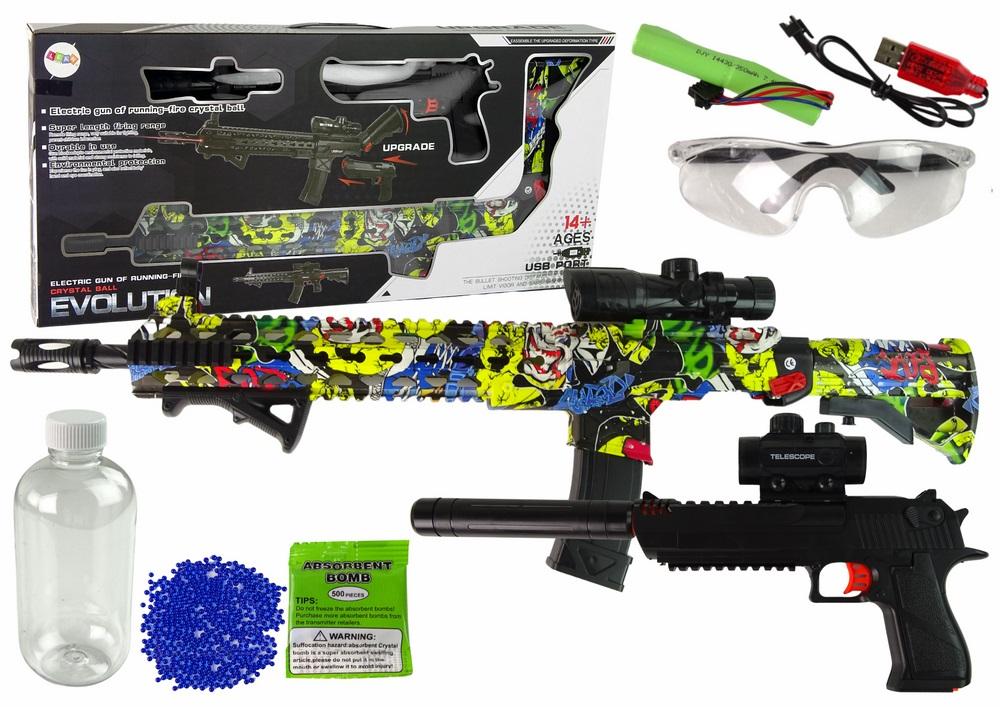 Karabin Pistolet na Kulki Wodne Akcesoria Kolorowy Ten zestaw broni zapewnia realistyczne doznania i wiele zaawansowanych funkcji, co sprawia, że stanowi fascynujący gadżet dla miłośników militariów. Zarówno karabin, jak i pistolet wyróżniają się nie tylko wyglądem, ale także rozbudowanymi możliwościami. Oba modele posiadają teleskopy, które pozwalają na dokładne oddawanie strzałów. Karabin wyposażony jest w laser, który ułatwia precyzyjne celowanie, podczas gdy pistolet wyposażony jest w tłumik, który pozwala na bardziej dyskretne strzelanie. Niezwykłą cechą tego zestawu jest możliwość korzystania z pistoletu osobno lub włożenia go do karabinu, tworząc tym samym bardziej wszechstronną broń. Karabin jest zasilany akumulatorowo, co zapewnia długotrwałe użytkowanie. W zestawie znajdują się również okulary ochronne, które zapewniają bezpieczeństwo podczas strzelania. Dodatkowo, znajdziesz w nim także kulki oraz pojemniczek na nie, co sprawia, że masz wszystko, czego potrzebujesz, aby cieszyć się realistycznymi doświadczeniami. Całość została wykonana z trwałego plastiku, co gwarantuje ich długotrwałość. Wymiary pistoletu wynoszą: 40 cm x 19 cm x 3 cm, natomiast karabinu: 79 cm x 29 cm x 5 cm. Ten zestaw stanowi nie tylko fascynujący gadżet, ale także doskonałą propozycję dla miłośników militariów, którzy chcą doświadczyć strzelania w bezpieczny i kontrolowany sposób! Elementy zestawu: - karabin - pistolet - 2 teleskopy - tłumik - laser - okulary - kulki - pojemnik na kulki - podkładka - akumulator - kabel do akumulatora Wymiary pistoletu: 40 cm x 19 cm x 3 cm Wymiary karabinu: 9 cm x 29 cm x 5 cm Wymiary opakowania: 75 cm x 35 cm x 8 cm Posiada certyfikat CE, ponadto jest zgodny z normą EN71. Zabawka przeznaczona jest dla dzieci powyżej 14 roku życia.