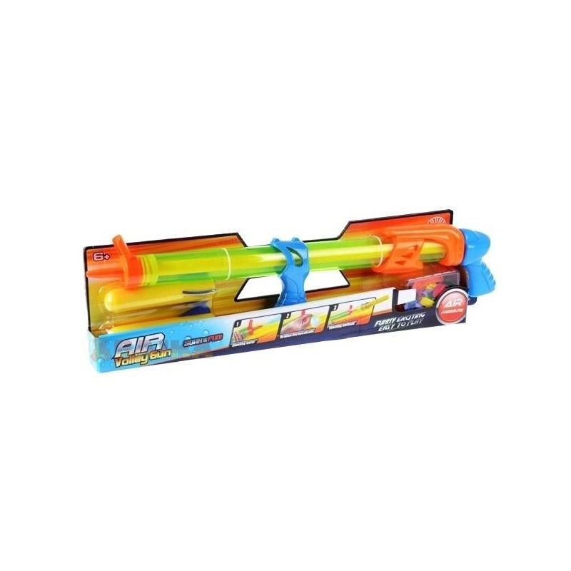 Wielofunkcyjny, bardzo ładny pistolet ze strzałkami i balonikami na wodę. Latem może być pompą do polewania, pompą do napełniania bomb wodnych, a w pozostałej części roku bezpieczną zabawką na miękkie, piankowe strzałki.
