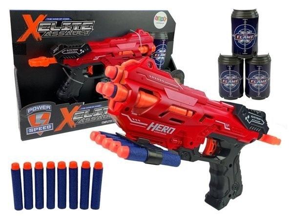 Pistolet Na Piankowe Naboje Czerwony Zasięg 18 m Puszki