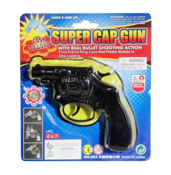 Plastikowy pistolet do zabawy. Za jednym razem możesz wystrzelić nim aż 8 razy. Produkt zapakowany w kartonowa podstawkę z przezroczystym kloszem. Zabawka przeznaczona dla dzieci od 8 lat. Podane wymiary są wymiarami opakowania.