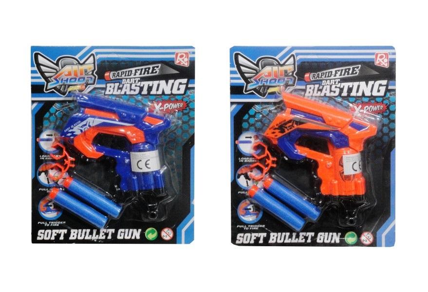 Plastikowy pistolet na pociski. Produkt zapakowany w kartonową podstawkę z przezroczystym kloszem. Zabawka dla dzieci od 3 lat. Podane wymiary stanowią wymiar opakowania. Produkt występuje w kilku wersjach kolorystycznych, wybierany losowo. Cena dotyczy jednej sztuki.