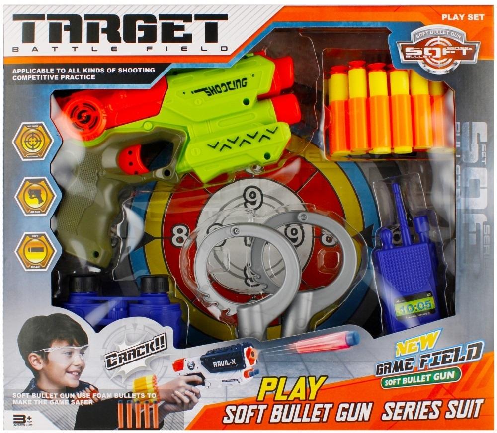 Zalety produktu: pistolet lekki i wygodny w trzymaniu, miękkie i nie szkodliwe pociski piankowe, strzałki należy umieścić w magazynku a po naciśnięciu spustu pocisk wystrzeliwuje z pistoletu, tarcza łatwa do montaż. Pistolet MEGA CREATIVE zapewni niezwykle emocjonującą zabawę każdemu dziecku, zarówno dużemu jak i małemu! Zawartość zestawu: pistolet, 14 zupełnie bezpiecznych piankowych pocisków, tarcza do ustawienia-powieszenia, lornetka, kajdanki, krótkofalówka. Całość wykonana z plastiku oraz pianki. Wymiary/waga/baterie: wymiary produktu (dł. x wys. x gł.)[cm]: pistolet 22x13x5, wymiary opakowania (dł. x wys. x gł.) [cm]: 36x32x7, waga produktu bez opakowania [kg]: 0,28 kg, waga produktu w opakowaniu [kg]: 0,49 kg, nie wymaga zasilania bateriami. Zabawka przeznaczona dla dzieci w wieku: 6+. Pakowana w kartonik z okienkiem.