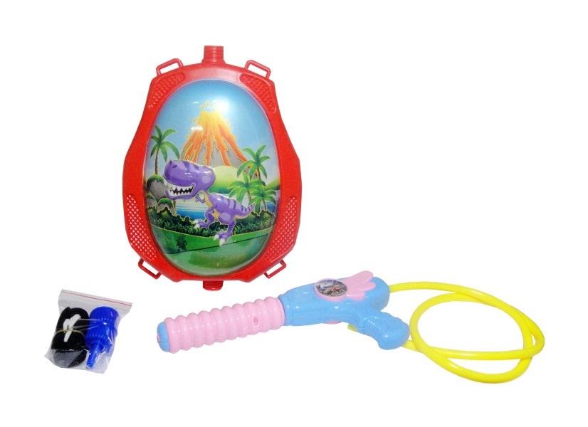 Plastikowy pistolet z pojemnikiem na wodę w formie plecaczka. Dzieci napełniając zbiornik wodą dzięki paskom mogą założyć pojemnik na plecy, a dzięki wężykowi będą mieć "dostęp" do wody. Produkt dla dzieci od 3 lat. Podane wymiary stanowią wymiar opakowania. Produkt zapakowany w przezroczysty worek.
