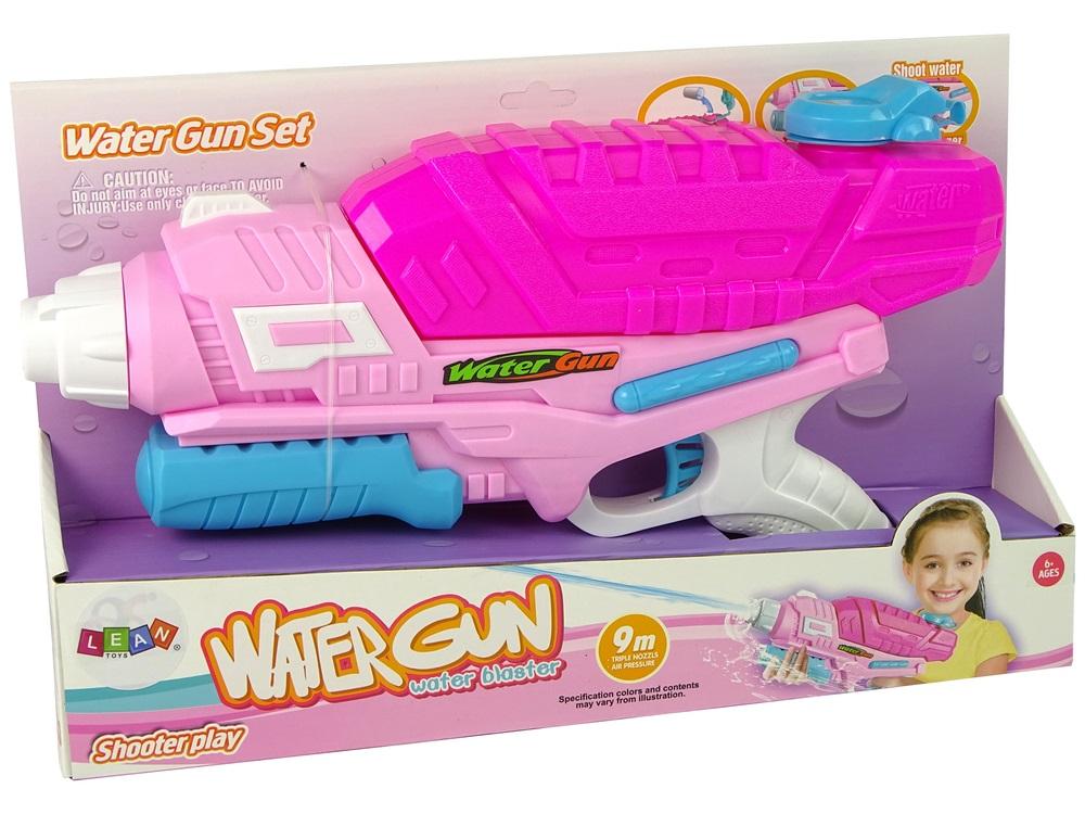 Pistolet Na Wodę 1000 ml Różowy Zabawkowe pistolety wodne to zabawka używana przez dzieci w okresie letnim, czy to nad morzem, na podwórku, przy basenie. Zabawa z ich wykorzystaniem wywoła ogromną radość u dzieci, ale i dorosłych też uwielbiają bitwy wodne. Plusem jest ochłoda w upalne dni. Radość z twarzy waszych pociech nie zejdzie, najbardziej szczęśliwe są wtedy, jak się ubrudzą lub tak jak w tym przypadku umoczą. Prezentowana broń na wodę jest w kolorystyce różowej z elementami niebieskiego i białego. Amunicja, czyli woda, jest bezpieczna i można rozpocząć potyczkę z rodziną lub rówieśnikami. U góry pistoletu znajduje się niebieski korek, należy otworzyć go i napełnić zbiorniczek do 80 % wodą. Pojemność całego zbiorniczka to 1000 ml. Ciśnienie będzie miało dość duży zasięg 9 m, a i pojemność sprawi, że zabawa będzie dużo dłuższa i maluch nie musi się martwić o brak amunicji w trakcie boju. Amunicja naładowana? Więc jedyne co pozostało, wziąć pistolet do ręki i rozpocząć podwórkowe bitwy. Wymiary zabawkowego pistoletu: 37 cm x 20 cm x 6 cm Wymiary opakowania: 40 cm x 7 cm x 25 cm Zabawkowy pistolet na wodę przeznaczony jest dla wszystkich dzieci powyżej 6. roku życia. Zabawka zgodna z normą EN71.