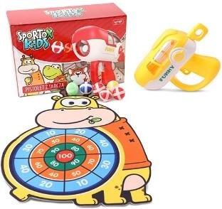 W zestawie: pistolet, tarcza z haczykiem do zawieszenia na naklejkę, 6 piłek na rzep. Funkcje: ładowanie pistoletu - piłki wkłada się do pistoletu przez klapkę na górze zabawki, strzelanie: pociągnąć za zawleczkę z tyłu pistoletu, przechylić do do przodu tak, by kulka wpadła do komory wystrzału, wycelować i nacisnąć spust, piłka przyczepi się do tarczy. Pozostałe informacje: wym. zabawki: 22 x 17 x 8,5 cm., wym. tarczy: 41 x 29 cm., wym. opakowania: 29,5 x 19 x 11 cm., 3+