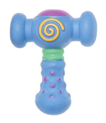 Miękki kolorowy młotek to narzędzie dla małego majsterkowicza. Podczas uderzania młotek wydaje dźwięk, co uatrakcyjnia zabawę.