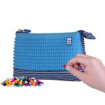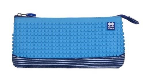 Niebieski w paski filcowy piórnik z niebieskim panelem silikonowym o wymiarach 33 x 10 punktów silikonowych pikseli . Oznacza to , że jest 227 miejsc do ułożenia swoich pomysłów .