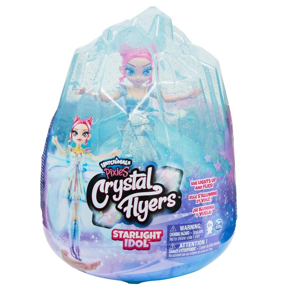 Odkryj oszałamiającą Hatchimals Pixie, która świeci się i lata! Crystal Flyers to pierwsze w historii Hatchimals Pixie, które naprawdę potrafią latać z Twoją pomocą. Wewnątrz wspaniałego kryształowego jajka, znajdziesz piękną Crystal Flyer Pixie z błyszczącymi skrzydłami, opalizującą sukienką i metalicznym makijażem. Wyjmij swoją Starligh Idol Pixie z jajka i naładuj ją za pomocą dołączonego kabla USB. Gdy jest w pełni naładowana, jest gotowa do tańca i rozświetlania nieba! Włącz swoją Pixie, diody LED na jej sukience zaczną pulsować, a jeej błyszczące skrzydła zaczną trzepotać. Puść ją, a będzie magicznie latać! Korzystaj ze swoim mocy Pixie, aby ją kierować! Dzięki wbudowanemu czujnikowi Starling Idol Pixie może wykryć, gdzie są Twoje ręce, gdy pogadasz jej latać w pomieszczeniu. Podnieś ręce do góry, a poleci wysoko. Obniż, a poleci nisko, tańcząc w powietrzu! Gdy unosi się nad Twoimi rękoma, jej sukienka mieni się, a skrzydła błyszczą w trakcie lotu! Jest taka piękna! Dzięki odrobinie praktyki, Ty i Twoja Pixie zostaniecie najlepszymi powietrznymi tancerzami w Hatchtopii! W trakcie lotu możesz bezpiecznie chwycić nogi Pixie i zmienić jej pozycję. Jest wykonana z trwałych i przetestowanych materiałów, dzięki czemu jeśli dotkniesz jej skrzydeł podczas lotu, nic się nie stanie. Dzięki funkcji autoamtyczngo zatrzymania, po prostu przestanie latać. Kiedy nie lata, prezentuj swoją Starlight Idol Pixie w jej błyszczącym, przezroczystym jajku. Hatchimals Pixies Crystal Flyers to doskonałe zabawki dla dziewczynek w wieku 6 lat i starszych. Ożyw swoją Hatchimals Pixie! Magia jest w Twoich rękach!
