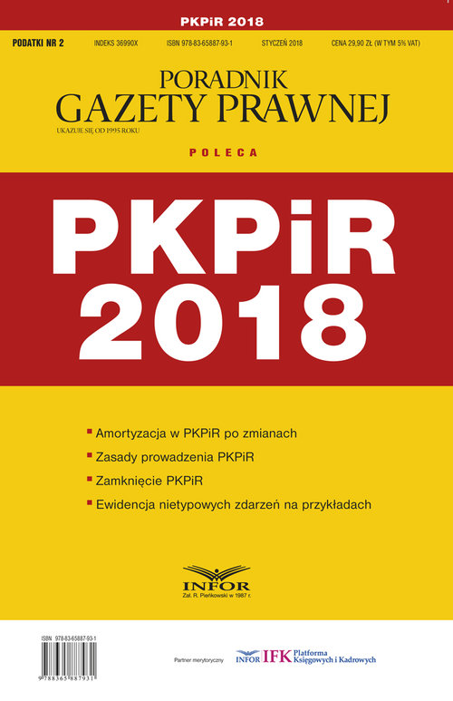 Komplet informacji o zasadach prowadzenia podatkowej księgi przychodów i rozchodów. W publikacji omówiono: • rozliczanie przychodów w pkpir (m.in. rozliczenie otrzymanej zaliczki, rozliczenie dofinansowań, zasady dokonywania korekty przychodów), • rozliczanie kosztów w pkpir (m.in. rozliczenie kosztów podróży służbowych, wydatków samochodowych, odpisów amortyzacyjnych, zasady dokonywania korekty kosztów, dowody księgowe rozliczające koszty), • zamknięcie księgi. Na przykładach omówiono nowe przepisy dotyczące m.in.: • amortyzacji środków trwałych, • ulgi na złe długi, • transakcji gotówkowych oraz ich limitowania w kosztach podatkowych. Publikacja zawiera również rozporządzenie w sprawie prowadzenia podatkowej księgi przychodów i rozchodów.