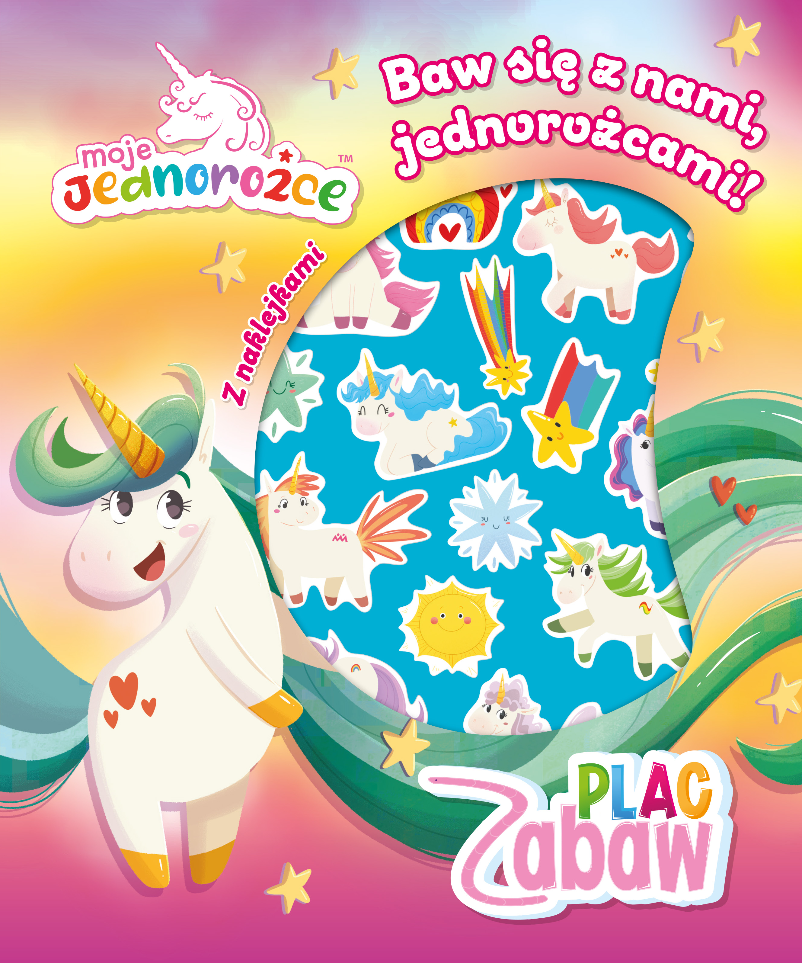 Chodź na Plac Zabaw razem z jednorożcami! Tu się gra, koloruje, rozwiązuje, a przede wszystkim: świetnie się bawi. Nie może cię zabraknąć! Psst! Nie bierz naklejek - one już tu są!