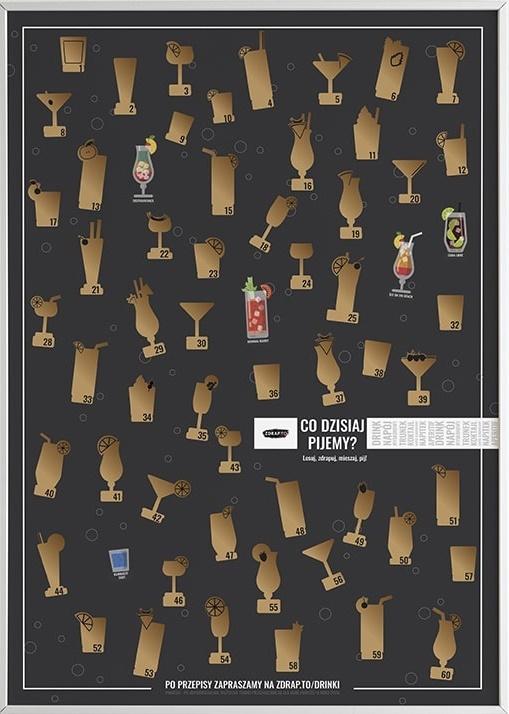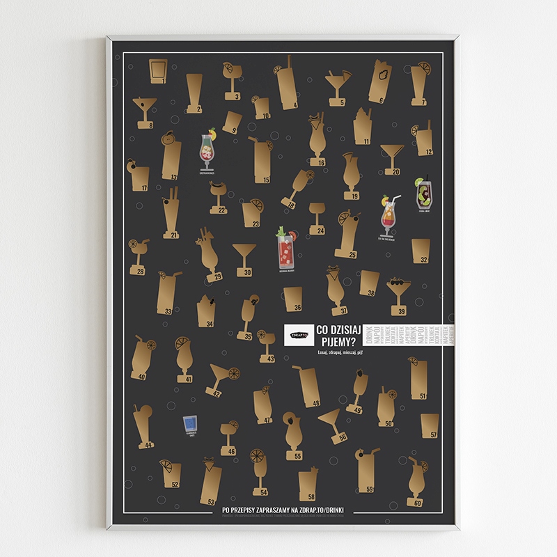 Dość monotonnych drinków! Wódka z colą to nie recepta na wszystko Koniec z odwiecznym pytaniem co dzisiaj pijemy Na naszym autorskim plakacie-zdrapce ukryliśmy 60 genialnych drinków, które zrobić może każdy. Losuj, zdrapuj, mieszaj, pij! Odkrywaj nowe alkohole, smaki, a przede wszystkim baw się dobrze!