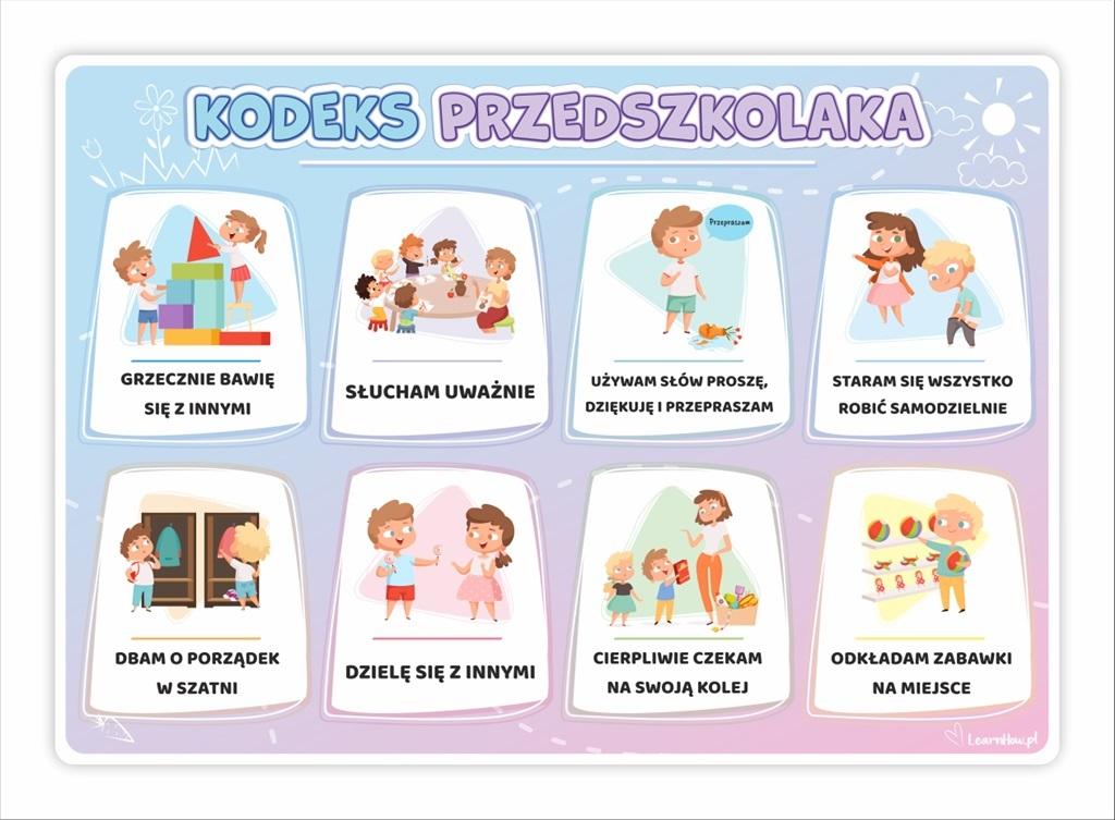 Kolorowy plakat kodeks przedszkolaka to idealny sposób aby przypominać dzieciom poprawne i uprzejme zachowanie.