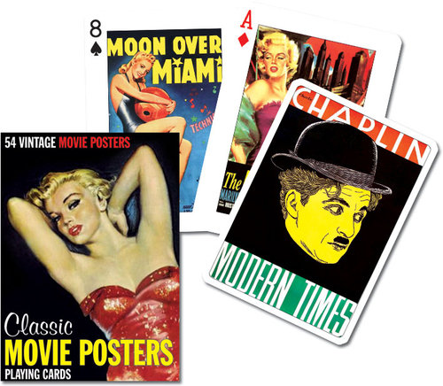 Najwyższej jakości karty do gry renomowanej firmy Ferd. Piatnik & Sohne poświęcone historii kina. Na 54 awersach plakaty filmowe od czasów Chaplina po kultowe filmy science fiction lat 50. Talia składa się z plastikowanych kart o wymiarach 63 x 88 mm i gramaturze 310. Idealna zarówno do brydża, pokera, remika jak i innych gier. Wyroby wiedeńskiej fabryki Ferd. Piatnik & Sohne od 1824 roku urzekają bogactwem wzorów i perfekcją wykonania. Jakość i tradycja!