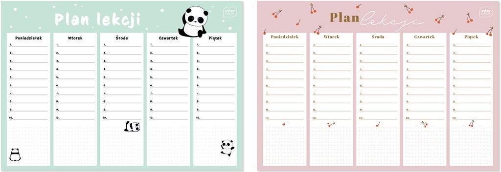 Plan lekcji z miejscem na notatki w poręcznym formacie A4. Wykonany z papieru kredowego.