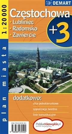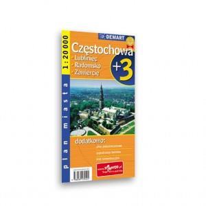 Plan Częstochowy w skali 1:20 000 plus centrum w skali 1:10 000, wzbogacony o plany najważniejszych miast w okolicy.- Ulice jednokierunkowe- Strefy ruchu pieszego- Sygnalizacja świetlna- Linie komunikacyjne (autobusowe, tramwajowe)- Spisy ulic i informacje teleadresowe okolicznych miast- Szlaki turystyczne i ścieżki rowerowe.