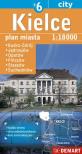 Plan Kielc w skali 1:18 000 plus centrum w skali 1:10 000, wzbogacony o plany najważniejszych miast w okolicy.- Ulice jednokierunkowe, sygnalizacja świetlna, znaki kontroli radarowej- Linie komunikacyjne- Rzeźba terenu Spisy ulic i informacje teleadresowe okolicznych miast- Szlaki turystyczne i ścieżki rowerowe.