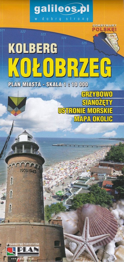 Mapa okolic Kołobrzegu w skali 1:50 000 oraz plan Kołobrzegu i Ustroni Morskich w skali 1:10 000. Bardzo dokładna mapa zawiera informacje takie jak: centrum miasta w skali 1:7 500 spis ulic miasta Kołobrzeg kościoły, kaplice przystanki PKS, MZK schroniska, kempingi apteki, szpitale, ośrodki zdrowia kawiarnie, restauracje ciekawostki o mieście