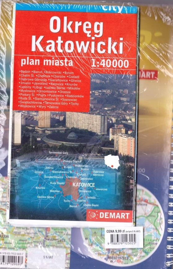 Plany miast Okręgu Katowickiego w skali 1:40 000. Mapa zawiera plany 36 miast: Będzin, Bieruń, Bobrowniki, Chełm Śląski, Chełmek, Chorzów, Czeladź, Dąbrowa Górnicza, Gierałtowice, Gliwice, Imielin, Jaworzno, Katowice, Knurów, Lędziny, Libiąż, Łaziska Górne, Mikołów, Mysłowice, Ornontowice, Orzesze, Piekary Śląskie, Psary, Pyskowice, Radzionków, Ruda Śląska, Siemianowice Śląskie, Sosnowiec, Świętochłowice, Tarnowskie Góry, Tychy, Wojkowice, Wyry, Zabrze.