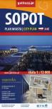Plan Sopotu w skali 1:12 000 Opracowanie obejmuje plan Sopotu, północną część Gdańska i południową Gdynię. Zawiera: wszystkie nazwy ulic, kościoły i zabytki, teatry, kina, parkingi, hotele, sanatoria, kempingi, restauracje, kawiarnie, bary Na rewersie umieszczono opisy wraz z fotografiami najważniejszych, godnych odwiedzenia atrakcji. Każda z tych atrakcji posiada numer, który umieszczono na planie celem łatwej lokalizacji. Mapa zawiera też powiększone centrum Sopotu w skali 1:6 000. Legenda mapy jest w języku polskim i angielskim.