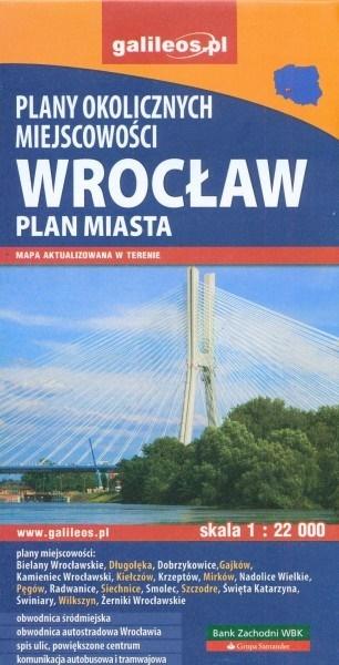 Plan Wrocławia i okolicznych miejscowości: Bielany Wrocławskie, Długołęka, Dobrzykowice, Gajków, Kamieniec Wrocławski, Kiełczów, Krzeptów, Mirków, Nadolice Wielkie, Pęgów, Radwanice, Siechnice, Smolec, Szczodre, Święta Katarzyna, Świniary, Wilkszyn, Żerniki Wrocławskie.