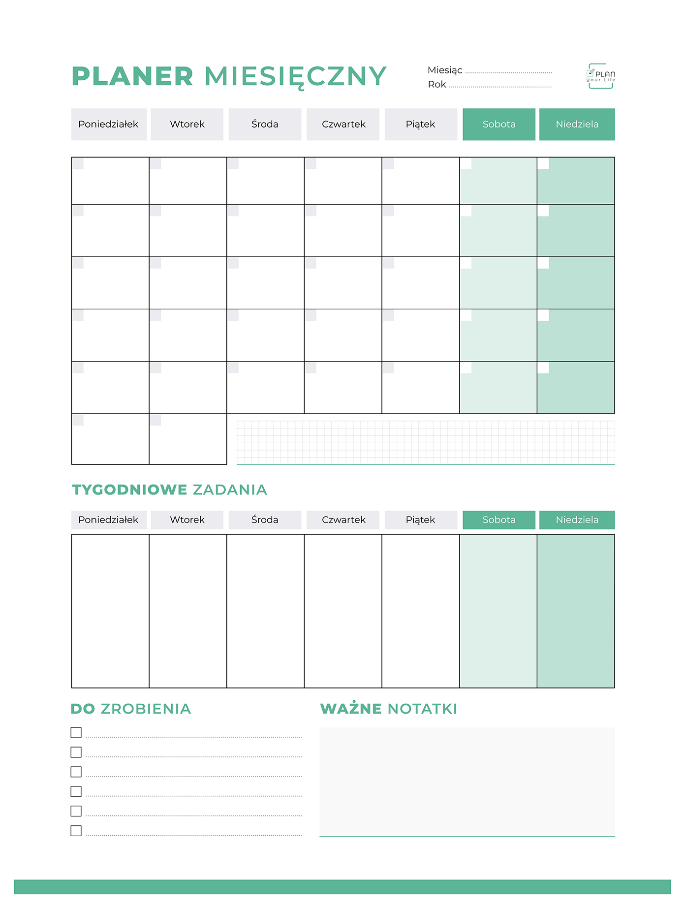 PLANER MIESIĘCZNY MAGNETYCZNY - zielony Marka: Plan Your Life Wymiary: 60 x 45 cm Planer wyposażony jest w magnetyczny podkład, dzięki czemu można go ulokować na lodówce jak i każdej innej powierzchni metalowej. Planer ten znacznie ułatwi zaplanowanie obowiązków i najważniejszych wydarzeń nadchodzącego miesiąca, nadaję się zarówno do domu, szkoły czy biura. Mocny magnes i warstwowa budowa Silny magnes powoduje, że planer się nie zsuwa i nie przemieszcza podczas pisania. Wytrzymała powierzchnia z nanomateriałów ułatwiająca ścieranie - sprawi, że planer będzie Ci długo służył nawet podczas bardzo intensywnego użytkowania! Do każdego planera marker GRATIS.