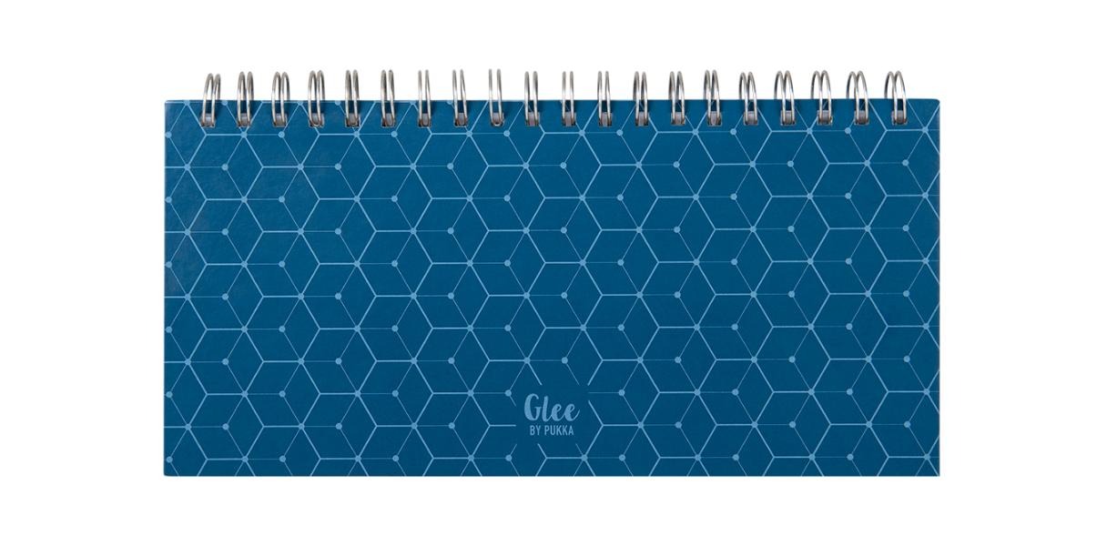 Planner z serii Glee to idealne miejsce na Twoje plany i zapiski. Dzięki połączeniu granatowych i srebrnych geometrycznych wzorów podąża za najnowszymi trendami. Zawiera 54 kartki, każda z dniami tygodnia. Posiada podwójną spiralę. Wymiary 27 mm x 13,2 mm.
