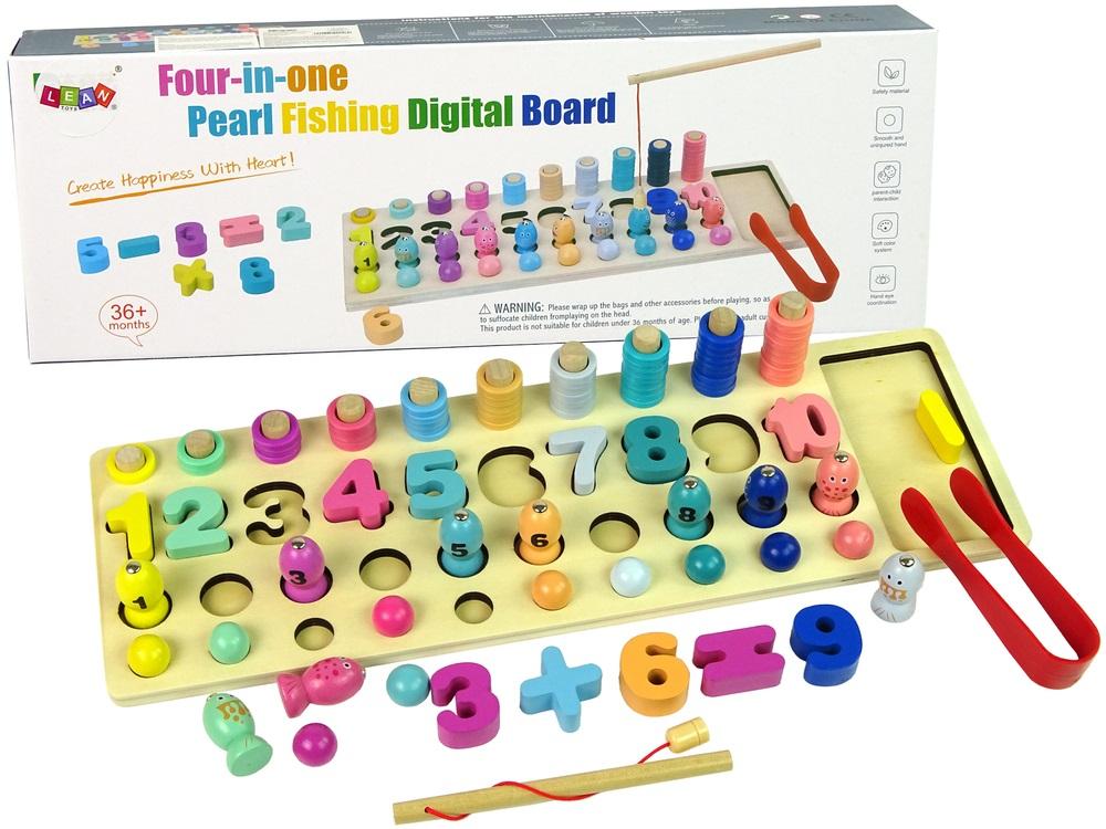 Każda rybka posiada odpowiednią liczbę i kolor. W pierwszej kolejności należy ułożyć rybki według sortera, kolejną czynnością i najlepszą jest łowienie rybek. W pyszczku każda ma zamontowany magnes, tak samo jak wędka dołączona do zestawu. Wystarczy zbliżyć wędkę i ups... rybka złowiona.