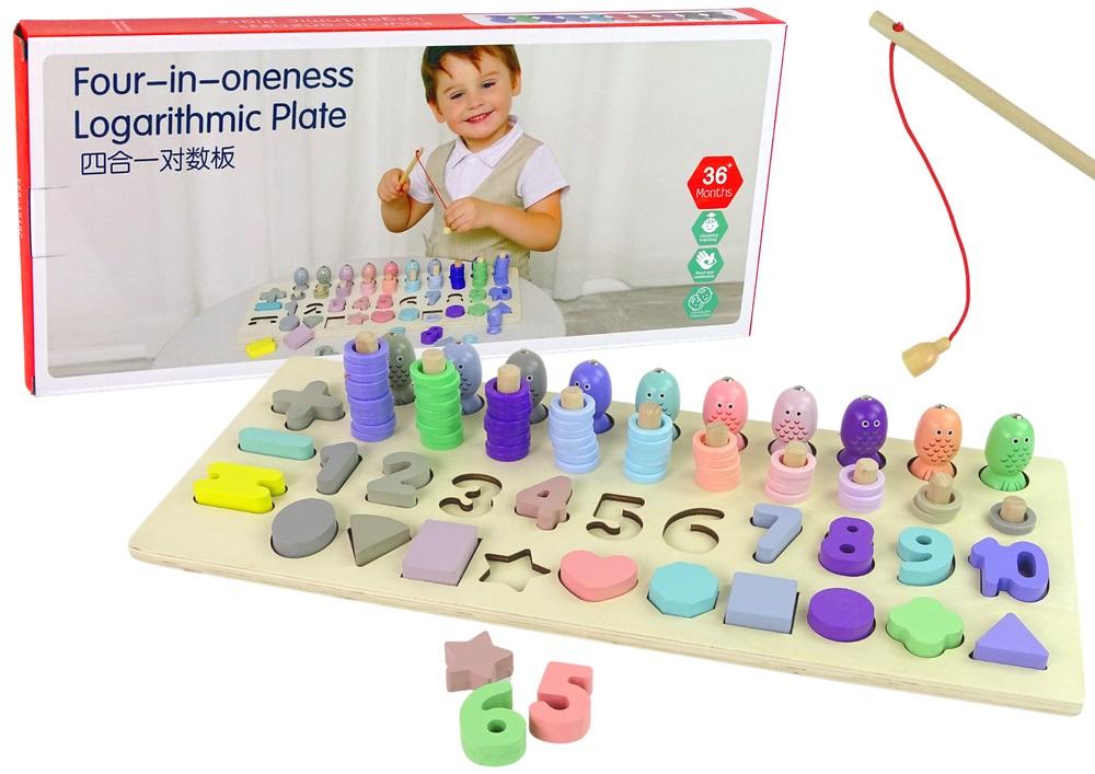 Plansza Drewniana Edukacyjna 4 w 1 Liczby Figury Geometryczne Łowienie Rybek Idealna plansza edukacyjna do rozpoczęcia nauki liczenia, wspomagająca w rozwoju Twojego dziecka. Maluch poprzez zabawę rozwinie się wielopłaszczyznowo, co zaprocentuje w przyszłości. Kolorowa układanka zainteresuje malucha, każde dziecko znajdzie coś dla siebie. Z uśmiechem na twarzy podejdzie do wyzwania. Kreatywna zabawka, która zabije nudę! Plansza ma cztery opcje zabawy: 1. Dopasowywanie kształtów i liczb Do zestawu dołączono kolorowe kształty i liczby należy dopasować je do odpowiednich otworów na planszy 2. Liczydło Na planszy ustawione jest 10 palików, na których należy nawlec odpowiednią ilość krążków, sugerując się liczbą na sorterze. 3. Łowienie Rybek Każda rybka posiada odpowiednią liczbę i kolor. W pierwszej kolejności należy ułożyć rybki według sortera, kolejną czynnością i najlepszą jest łowienie rybek. W pyszczku każda ma zamontowany magnes, tak samo jak wędka dołączona do zestawu. Wystarczy zbliżyć wędkę i ups... rybka złowiona. 4. Proste działania W zestawie są zawarte również znaki do działań matematycznych. Z dołączonych liczb i znaków można układać proste działania odejmowania, dodawania, bądź mnożenia. Maluch już może rozpocząć swoją naukę podstaw matematyki. Jakie zalety ma zabawka ? Nie ma lepszej motywacji do nauki dla dziecka, jak zabawa! Maluch będzie chciał pogłębiać wiedzę i stanie się to dla niego przyjemnością. Zabawka pomoże mu rozwinąć zmysł wzroku, precyzję, zdolności manualne, ale i kreatywność. Stonowana kolorystyka dodatkowo zadziała uspokajająco na dziecko. Dzięki sorterowi pozna również liczby i kolory oraz różne kształty. Zabawka wykonana jest z wysokiej jakości drewna, a wszystkie elementy zostały dokładnie oszlifowane i pomalowane na żywe kolory bezpiecznymi farbami. Zabawki drewniane są wyjątkowo trwałe i odporne na uszkodzenia, dzięki czemu posłużą latami w nienaruszonym stanie. Elementy zestawu: - plansza - liczby od 1 do 10 - kształty np. serce, kółko. - okręgi - rybki - wędka Wymiary planszy: 46 cm x 20 cm x 2 cm Wymiary jednej liczby: około 3 cm x 3 cm Wymiary rybki: 4 cm x 2 cm Wymiary opakowania: 46 cm x 21 cm x 6 cm Drewniana plansza przeznaczona jest dla wszystkich dzieci powyżej 3 roku życia. Zabawka posiada certyfikat CE, a jej produkcja jest zgodna z obowiązującą normą EN 71.