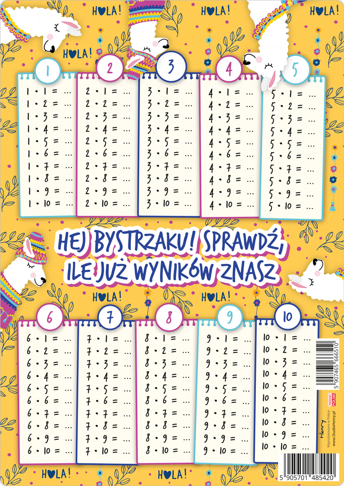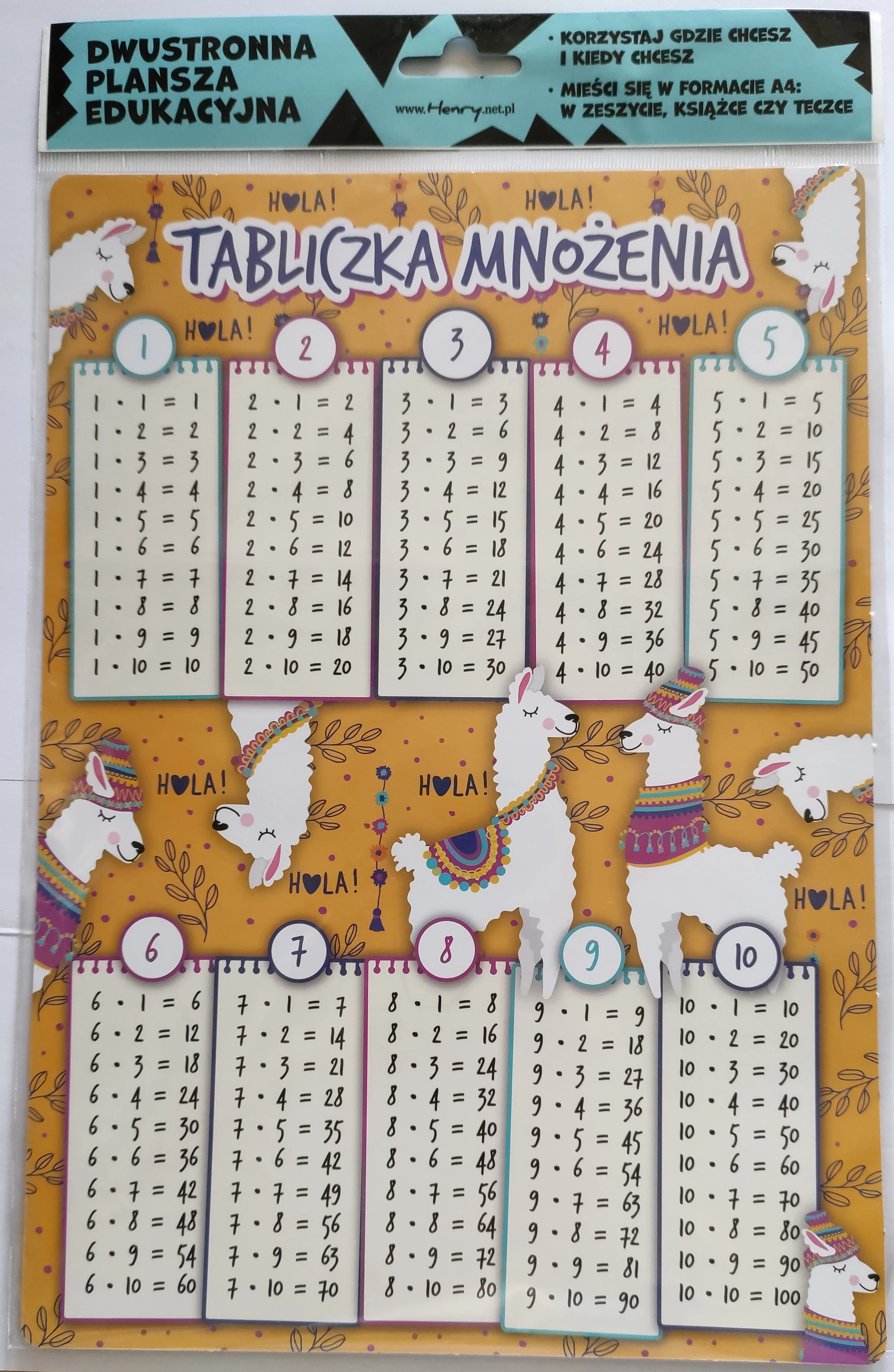 Opakowanie Plansza edukacyjna A4 tabliczka mnożenia lamy