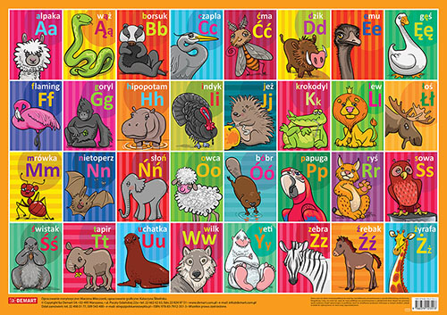 Plansza z polskim alfabetem jest sympatyczną pomocą wspomagającą młodego ucznia. Pokazuje różnice w graficznym obrazie małej i dużej litery drukowanej, przykładowe wykorzystanie wszystkich liter w zapisach nazw zwierząt oraz uczy kolejności liter w polskim alfabecie, z uwzględnieniem polskich znaków diakrytycznych, takich jak: ą, ę, ć, ł, ń, ó, ś, ź, ż. A przy okazji może zostać wykorzystana do gry w inteligencję (znanej też pod nazwą państwamiasta) w kategorii zwierzęta. Wszystkim literom towarzyszą humorystyczne rysunki zwierząt.