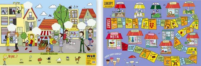- analizę wzrokową - w dolnej części planszy umieszczono ćwiczenie Ile jest? dzieci wyszukują przedmioty na planszy i liczą je, rozwijając w ten sposób spostrzegawczość i umiejętności matematyczne.