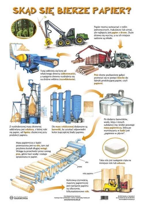 SKĄD SIĘ BIERZE PAPIER? / JAK POWSTAJE KSIĄŻKA?♦ format 61 cm x 86 cm♦ dwustronnie zalaminowane♦ wieloletnia trwałośćKto pisze książki, a kto czuwa nad ich wydaniem? Czym zajmują się redaktorzy językowi i techniczni? Skąd w książce biorą się ilustracje? Na czym polega mechanizm drukowania książki? Tego wszystkiego dzieci dowiedzą się z pierwszej strony planszy. Z kolei na drugiej stronie będą mogły obserwować krok po kroku proces produkcji papieru. Poznają odpowiedzi na pytania: z czego i gdzie wytwarza się papier, jakich maszyn się do tego używa, jakie są poszczególne etapy pracy, zanim do naszych rąk trafi arkusz papieru. Planszę można wykorzystać na każdym etapie nauki: zarówno w przedszkolu, klasach 1-3, jak i na lekcjach przyrody.
