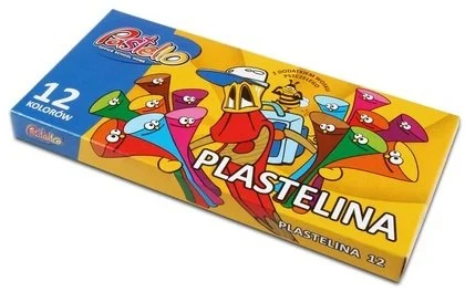 Plastelina 12 kolorów. Przeznaczona do zabawy, nauki modelowania, tworzenia prac plastycznych, odciskania, wykrawania foremkami. Elastyczna, łatwa do modelowania, intensywne kolory. Nie brudzi rąk i nie przywiera do podłoża. Wyprodukowane w Polsce.