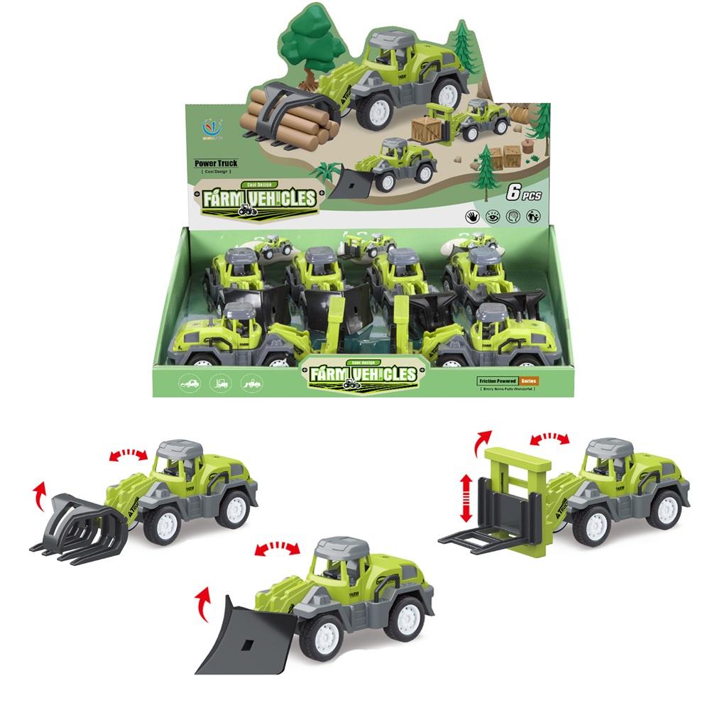 Traktorki dostępne z 3 różnymi łyżkami. Wymiary traktorka: 20 x 6 x 7 cm.